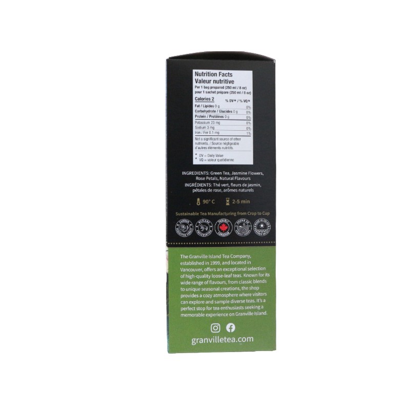INGREDIENTS: Green Tea, Jasmine Flowers, Rose Petals, Natural Flavours